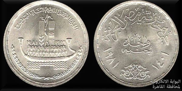 عملة فضية بقيمة 1 جنيه بمناسبة اليوبيل الفضي لتأميم قناة السويس عام 1981