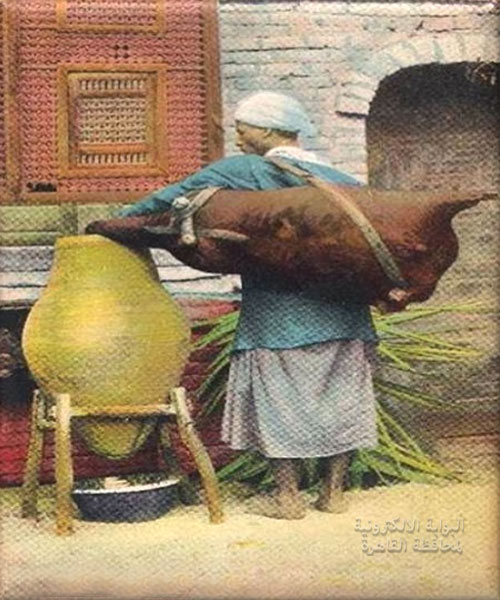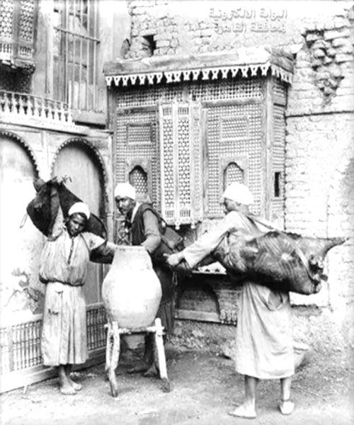 الماعز، يملؤها بالماء من النيل أو من أحد الأسبلة أو الخزانات، ثم يقوم بنقلها