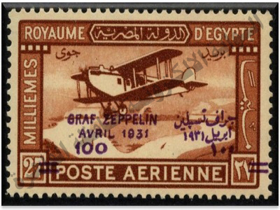 للجميع، طابع بريد جوي تذكاري لوصول المنطاد “جراف تسبلين” إلى مصر عام 1931، حيث